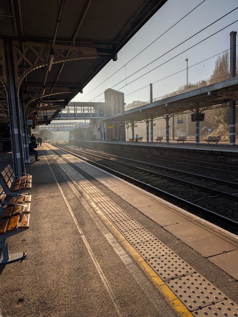 as the hard strobing flash of the train windows dizzies us,