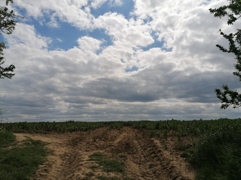 Your footsteps crunch across the ploughed earth